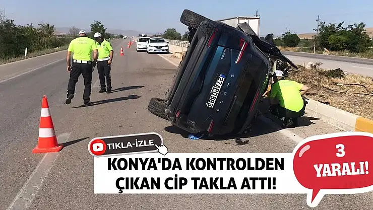 Konya'da kontrolden çıkan cip takla attı: 3 yaralı!