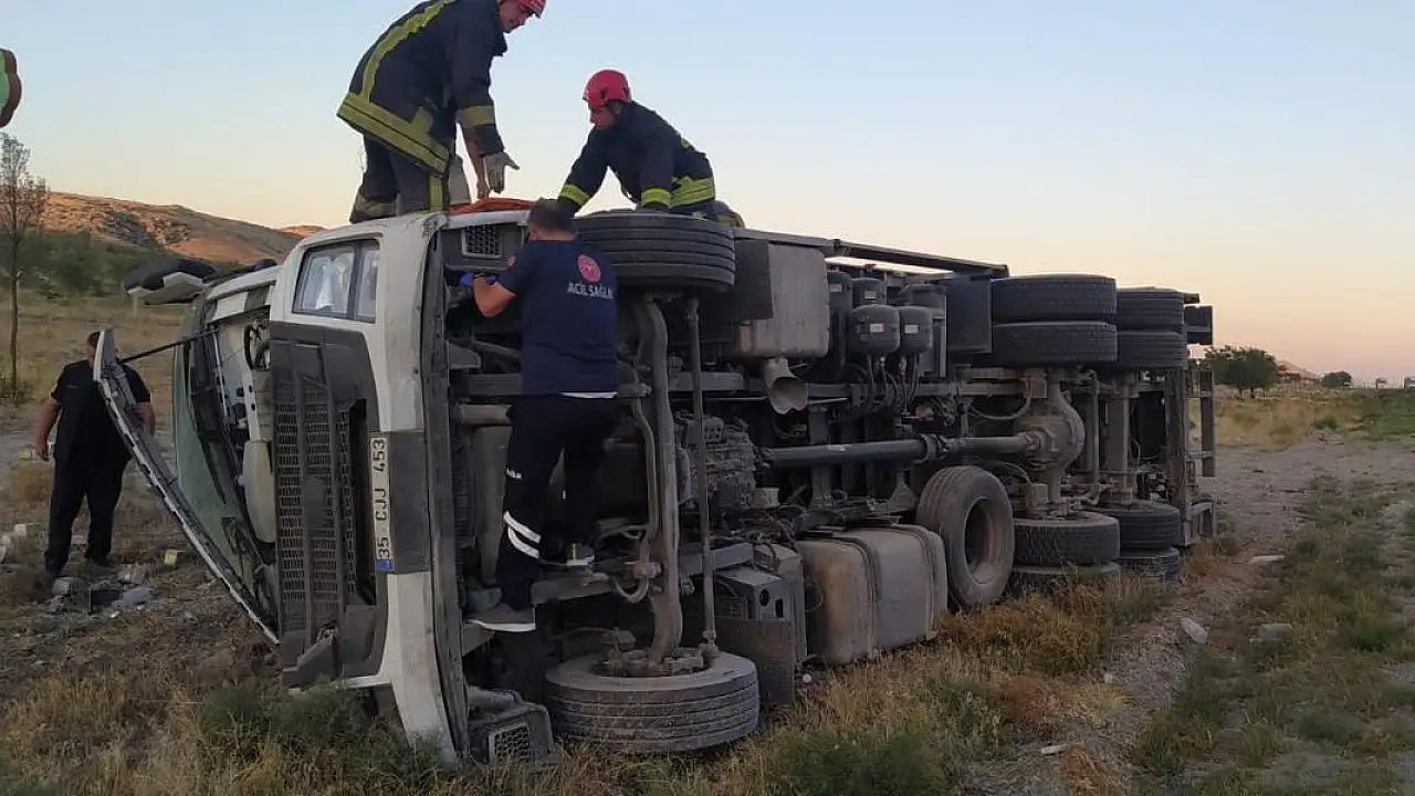 - Konya'da kontrolden çıkan kamyon devrildi!