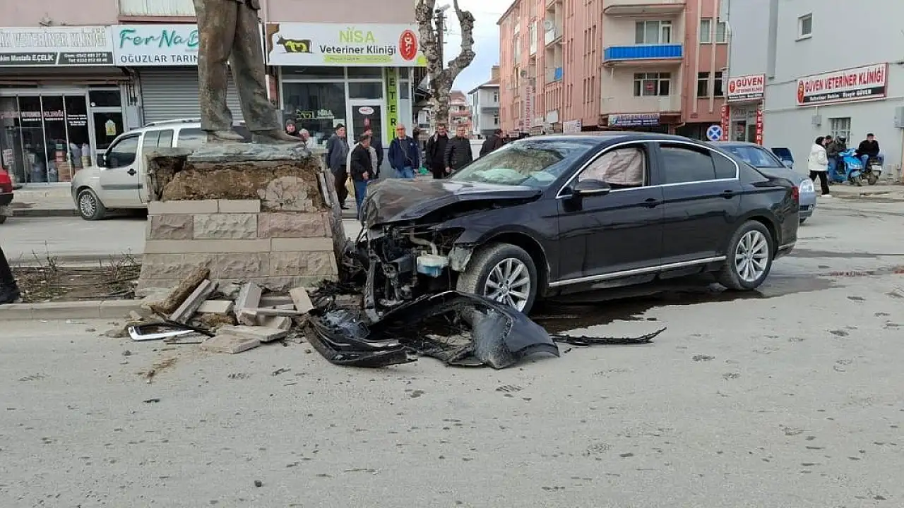 - Konya'da kontrolden çıkan otomobil heykele çarptı