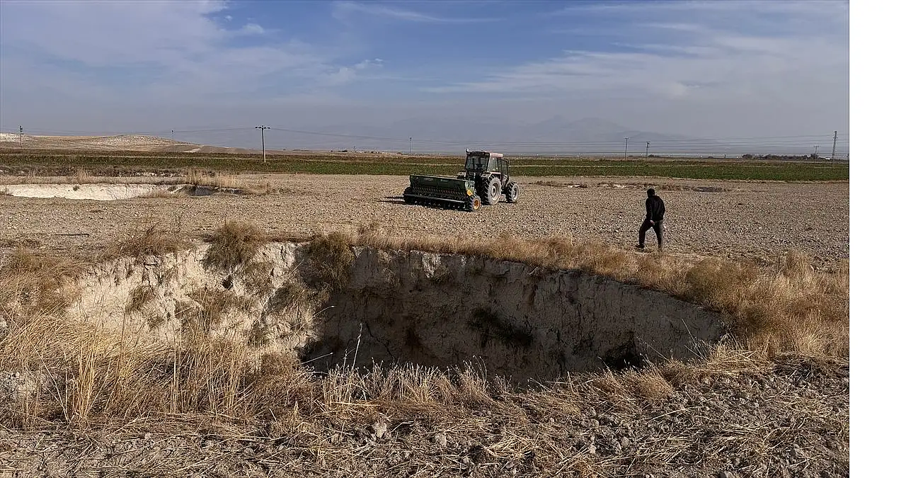 Gülbahar, "Tarlayı hazırladık. Ekim işlemini yapıyoruz. Bundan sonra yağmur olmazsa sulama yapacağız. Yağışları bekliyoruz. 2002'de bu tarlada obruk yoktu. 2012'den bu yana oluşmaya başladı. Hemen hemen yılda bir obruk oluyor. Derinlikleri de 10 metreden fazla, çapları ise daha büyük. Obruk tehdidi de devam ediyor. Sadece bu tarlada değil çevrede ve komşuların arazilerinde de obruk oluyor." ifadelerini kullandı.