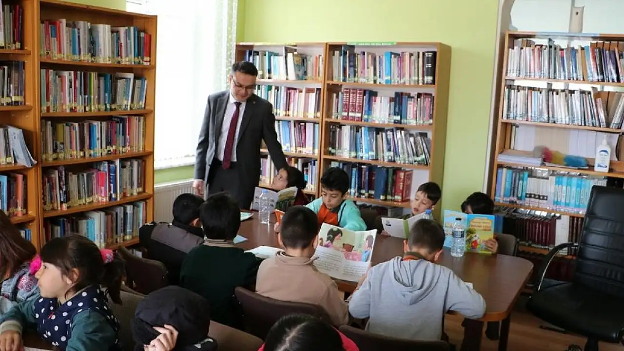 Kütüphanede Çakmak ve öğrenciler, kitap okuma etkinliği yapıldı.