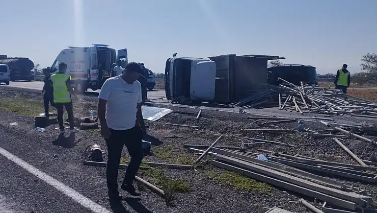 Konya'da lastiği patlayan kamyonet devrildi: 2 yaralı