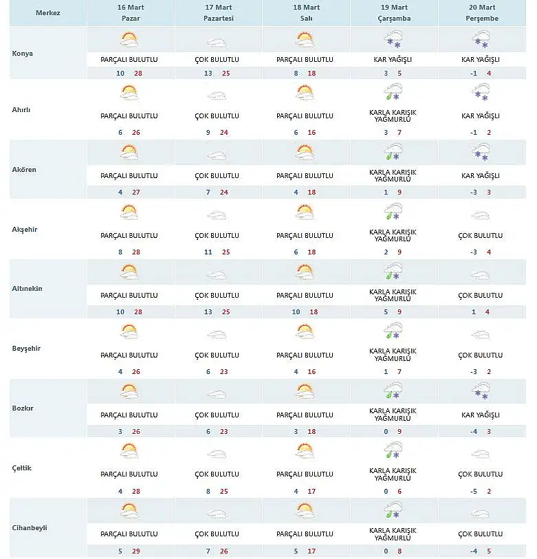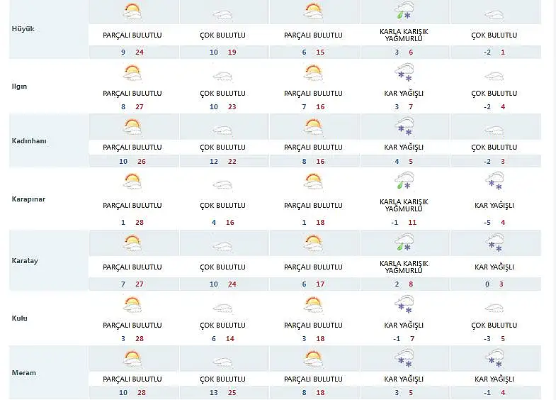 İŞTE KONYA VE İLÇELERİNİN 5 GÜNLÜK HAVA DURUMU TAHMİNİ: