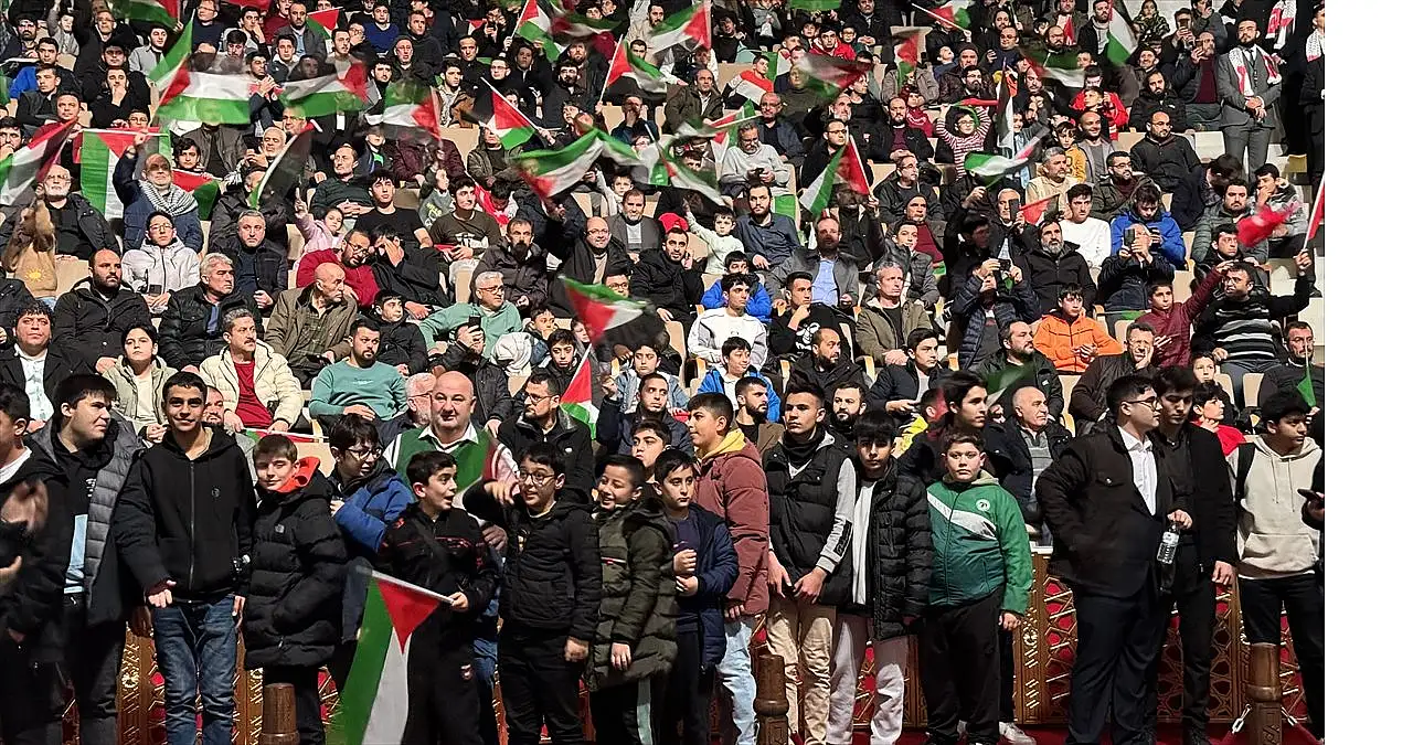 Konuşmanın ardından programa katılan davetliler, ellerinde Türk ve Filistin bayraklarıyla İsrail aleyhine slogan attı.