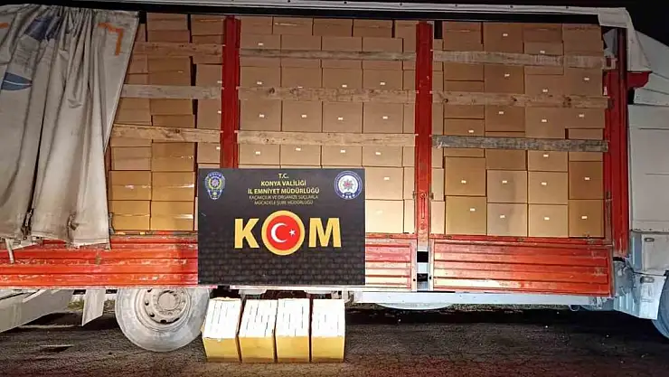Konya'da polis ekipleri tarafından bir kamyonda yapılan aramada piyasa değeri yaklaşık 8 milyon 750 bin lira olan 7 milyon 100 bin adet kaçak makaron ele geçirilirken, 2 şahıs gözaltına alındı.