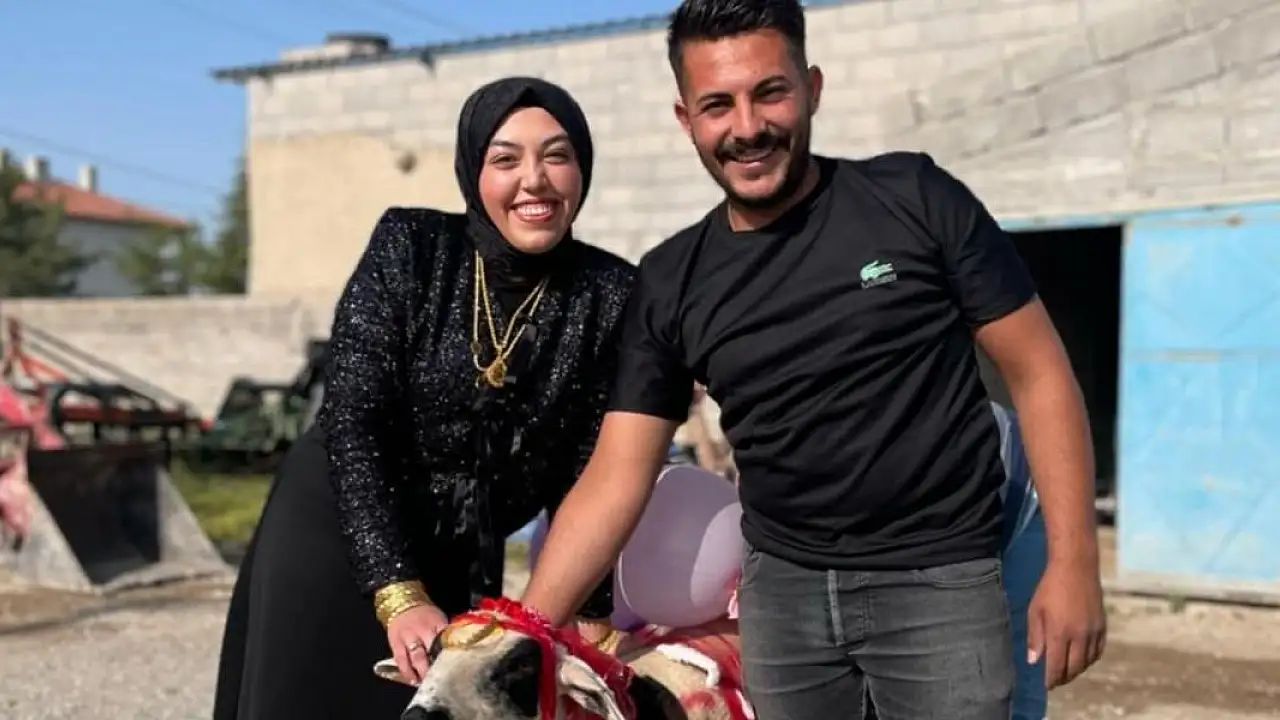 Konya'nın Karapınar ilçesinde bir genç nişanlısına süslediği koyunu hediye etti.