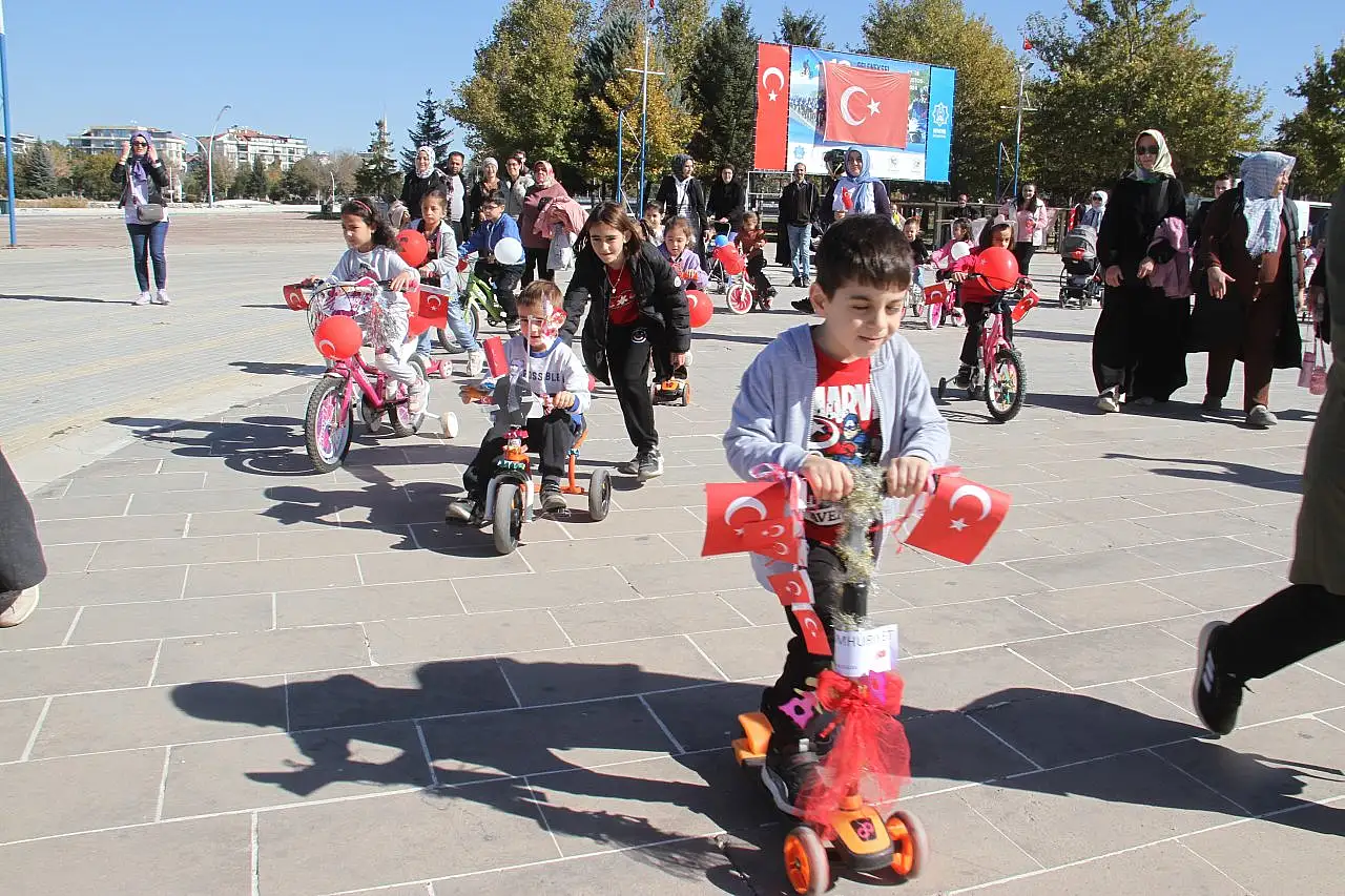 Konya'da öğrenciler cumhuriyetin 101. yıldönümü için pedal çevirdi