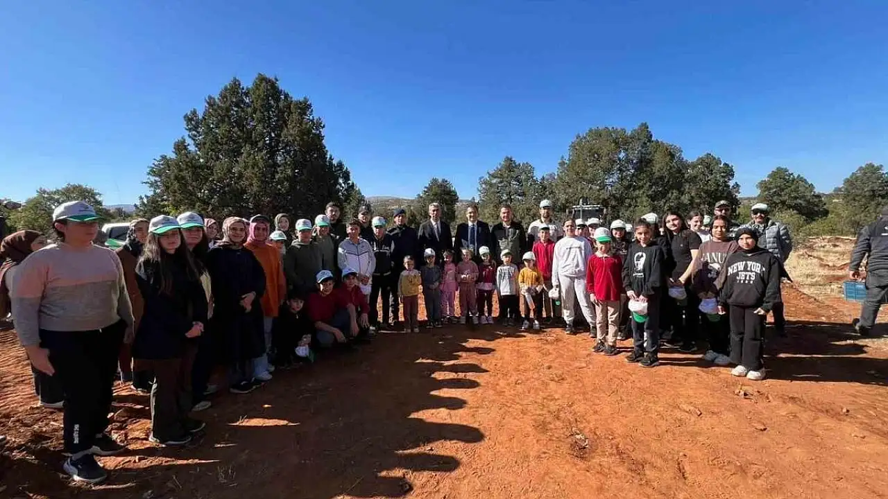 Konya’nın Bozkır ilçesinde, "Yeşil Vatan-Benim Okulum Geleceğe Çare" projesi kapsamında öğrenciler fidan dikti.