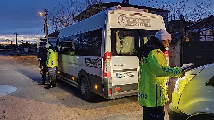 Kulu İlçe Jandarma Komutanlığı, İlçe Emniyet Müdürlüğü trafik ekipleri ve İlçe Milli Eğitim Müdürlüğünce ilçeye bağlı mahallelerden öğrenci taşıyan okul servisleri üzerinde ilçe girişleri başta olmak üzere okul önlerinde kontroller yapıldı.Denetim noktala