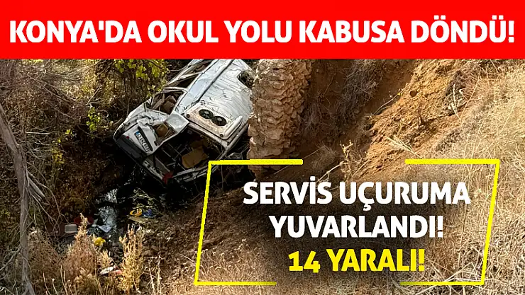 Konya'da Okul Yolu Kabusa Döndü! Servis Uçuruma Yuvarlandı! 14 Yaralı!