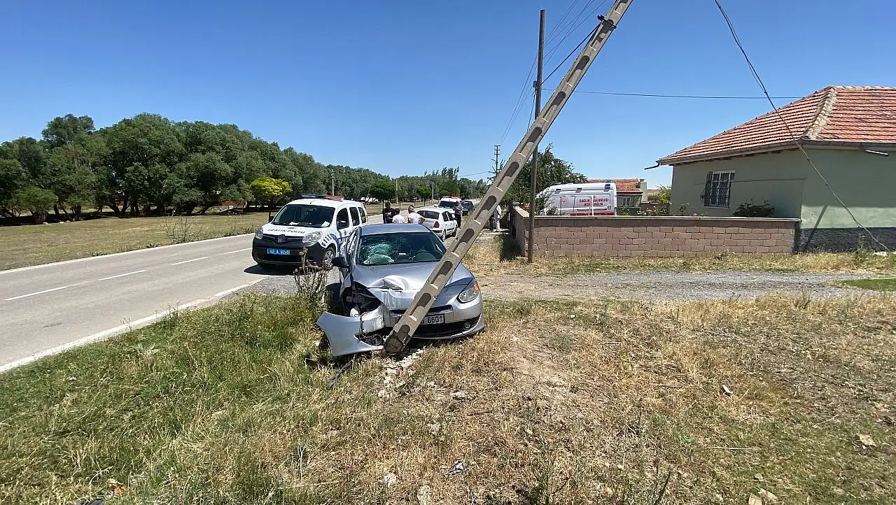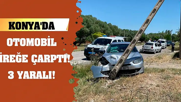 Konya'da otomobil direğe çarptı! 3 yaralı!