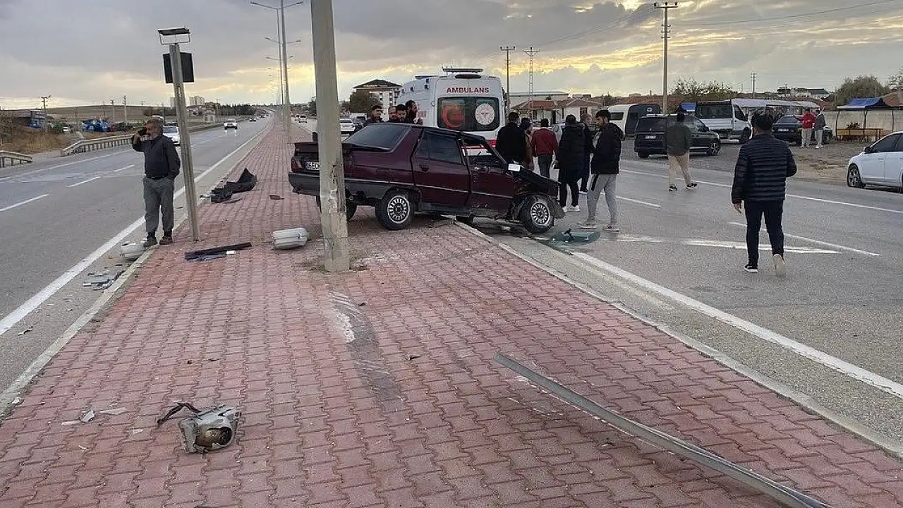 Konya'da otomobil refüjdeki direğe çarptı: 1 yaralı