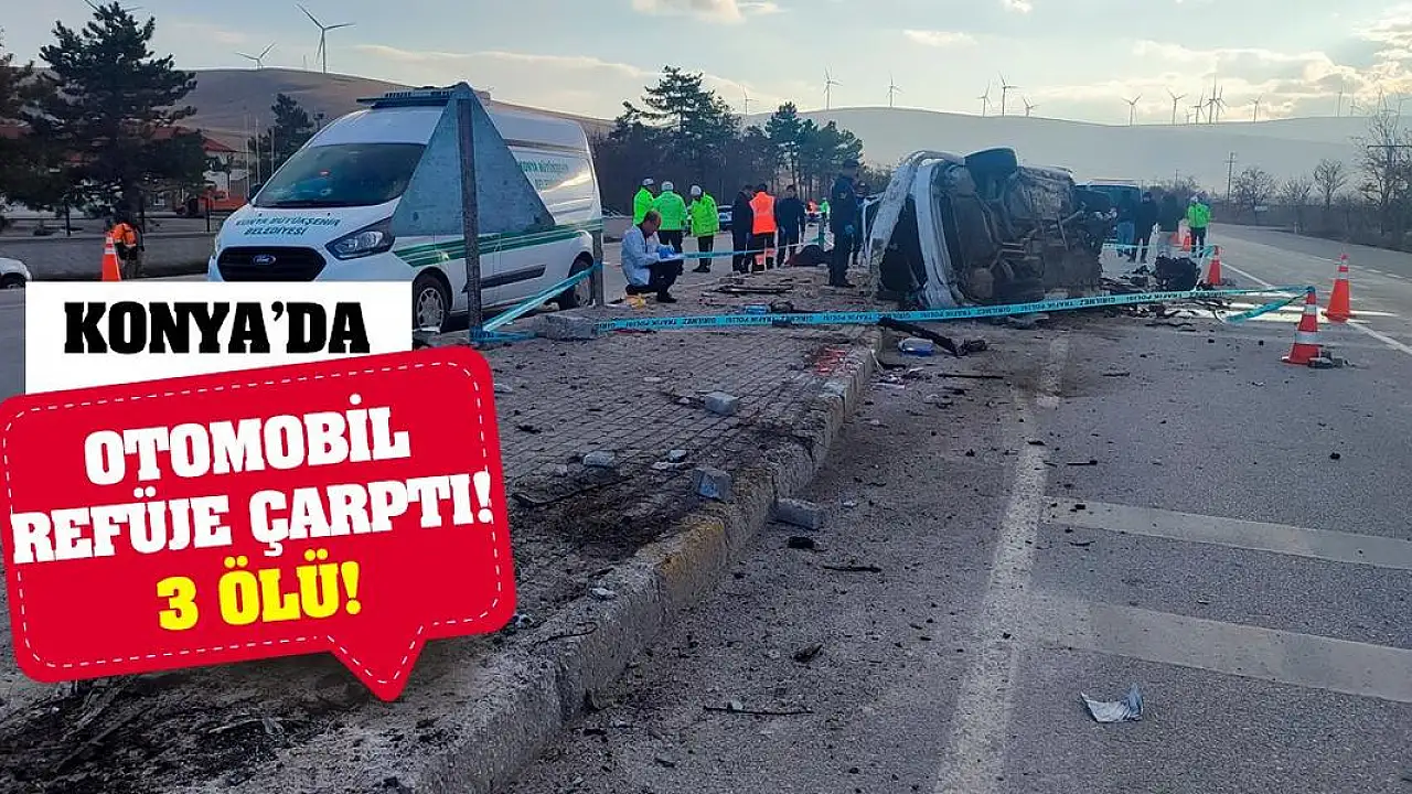 Konya'da otomobil refüje çarptı! 3 ölü!