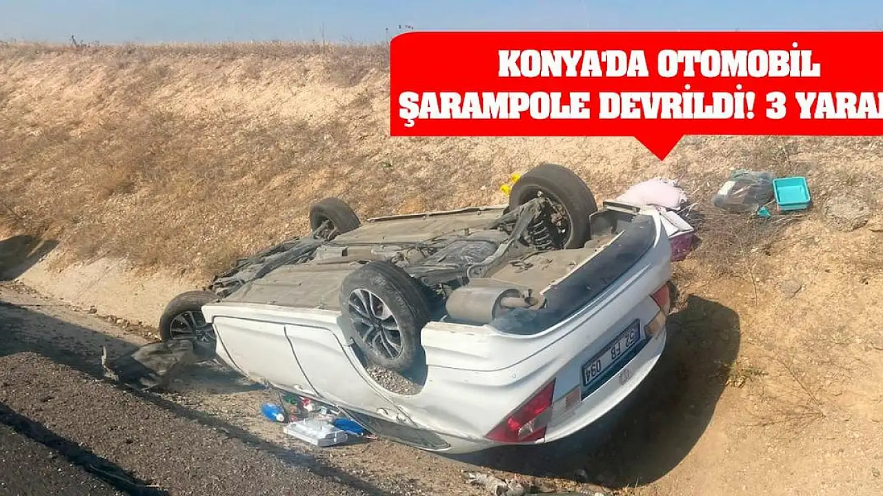 Konya'da otomobil şarampole devrildi! 3 yaralı!