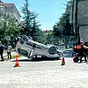 Kaza, öğle saatlerinde Akşehir İlçe Jandarma Komutanlığı önündeki kavşakta meydana geldi. Edinilen bilgiye göre, N.Ç. (32) idaresindeki 32 ACV 599 plakalı otomobil, C.Ö. yönetimindeki 42 D 1332 plakalı otomobil ile kavşakta çarpıştı. Çarpışmanın şiddeti ile 32 ACV 599 plakalı otomobil takla atarak ters döndü. Kazada 32 ACV 599 plakalı otomobilin sürücüsü N.Ç. yaralandı. Çevredeki vatandaşların ihbarı üzerine olay yerine sağlık ve polis ekipleri sevk edildi. İlk müdahalesi olay yerinde yapılan N.Ç. ambulansla Akşehir Devlet Hastanesine kaldırılarak tedavi altına alındı.