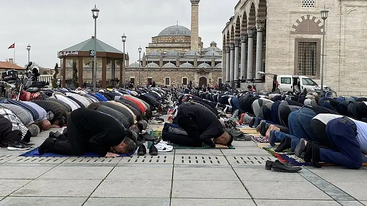 Ramazan ayının son Cuma namazında vatandaşlar camilere akın etti.Özellikle Mevlana Meydanı'nda bulunan Sultan Selim Camisi'ne gelen cemaat camiye sığmayınca meydana taştı.