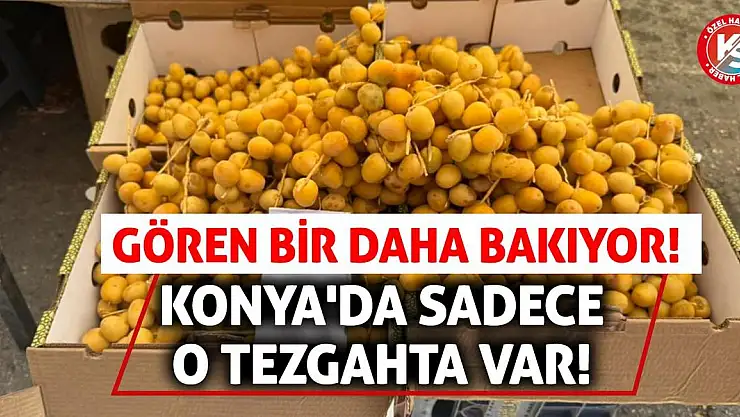 Konya semt pazarında mevsimlik sebze ve meyveler arasında dikkat çeken o tezgahın önünden geçenler dönüp bir daha bakıyor.Hem rengi hem de alışılmadık yapısıyla vatandaşın ilgisini çeken 'Taze Hurma' altın sarısı rengiyle tezgahı süslüyor.