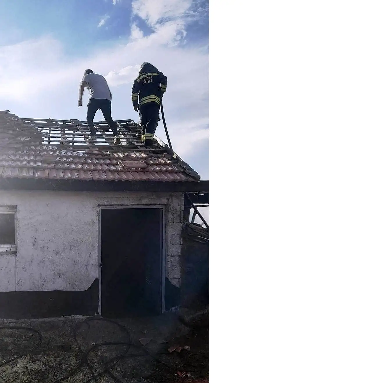Samanlık, kömürlük ve kiler olarak kullanılan yapıdaki yangına müdahale eden itfaiye ekipleri söndürerek soğutma çalışması yaptı. Yangında büyük çapta zarar meydana gelirken, çatı da tamamen yandı.