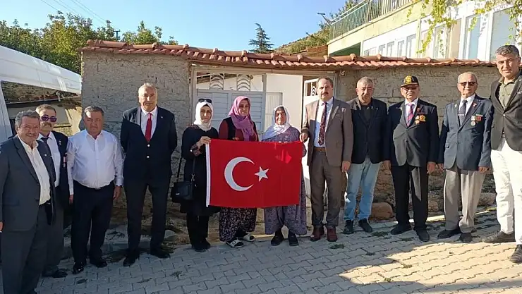 Gazi ve şehit ailelerine Türk Bayrağı ve üzerinde "Oğulsuz Yaşanır ama Vatansız Asla" yazılı tablo hediye edildi.