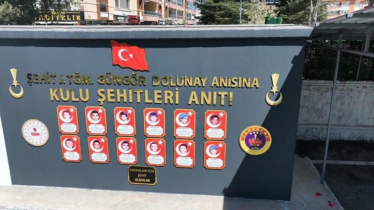 Kulu'da 14-20 Nisan Şehitler Haftası etkinliği çerçevesinde ilçe genelinde vatan uğruna can veren 12 şehide ait fotoğrafların yer aldığı şehitlik anıtı yaptırıldı. Kulu Kaymakamlığı ve İlçe Jandarma Komutanlığının iş birliği ile yapılan anıt, şehitlerin hatırlanması için Jandarma Komutanlığı bahçesindeki yerini aldı.