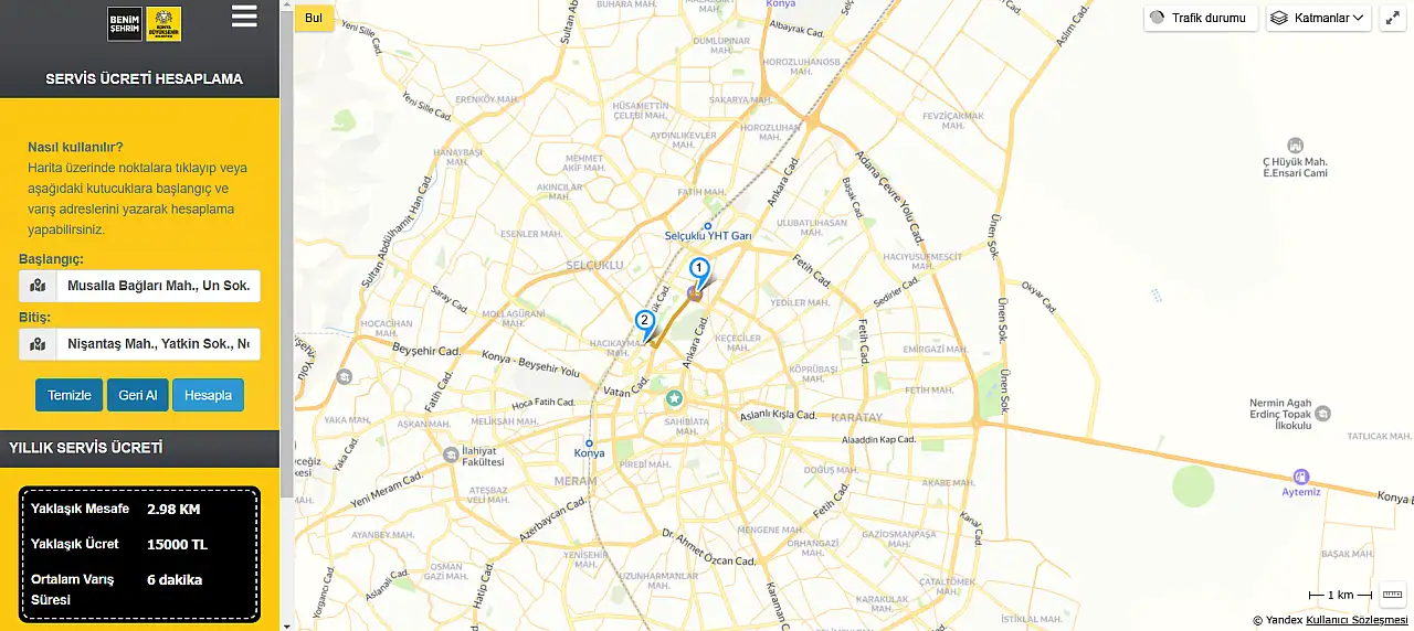 Konya'da servis ücretleri bir tık ile öğrenilecek!