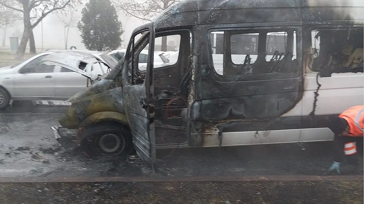 - Konya'da seyir halindeki minibüs cayır cayır yandı!