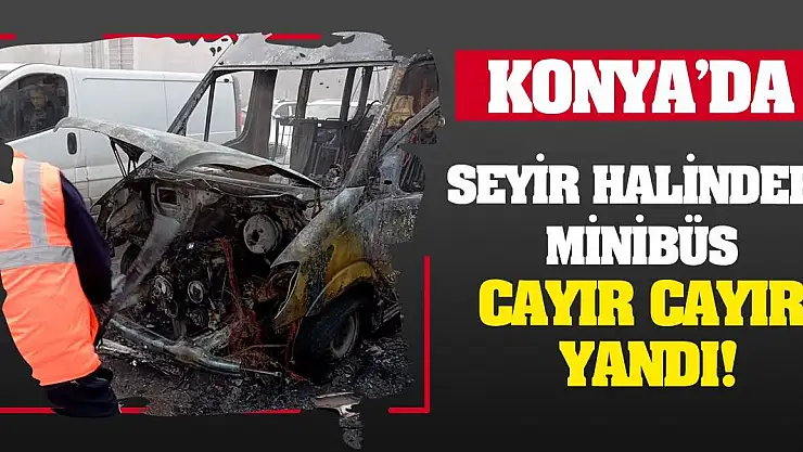 Konya'da seyir halindeki minibüs cayır cayır yandı!