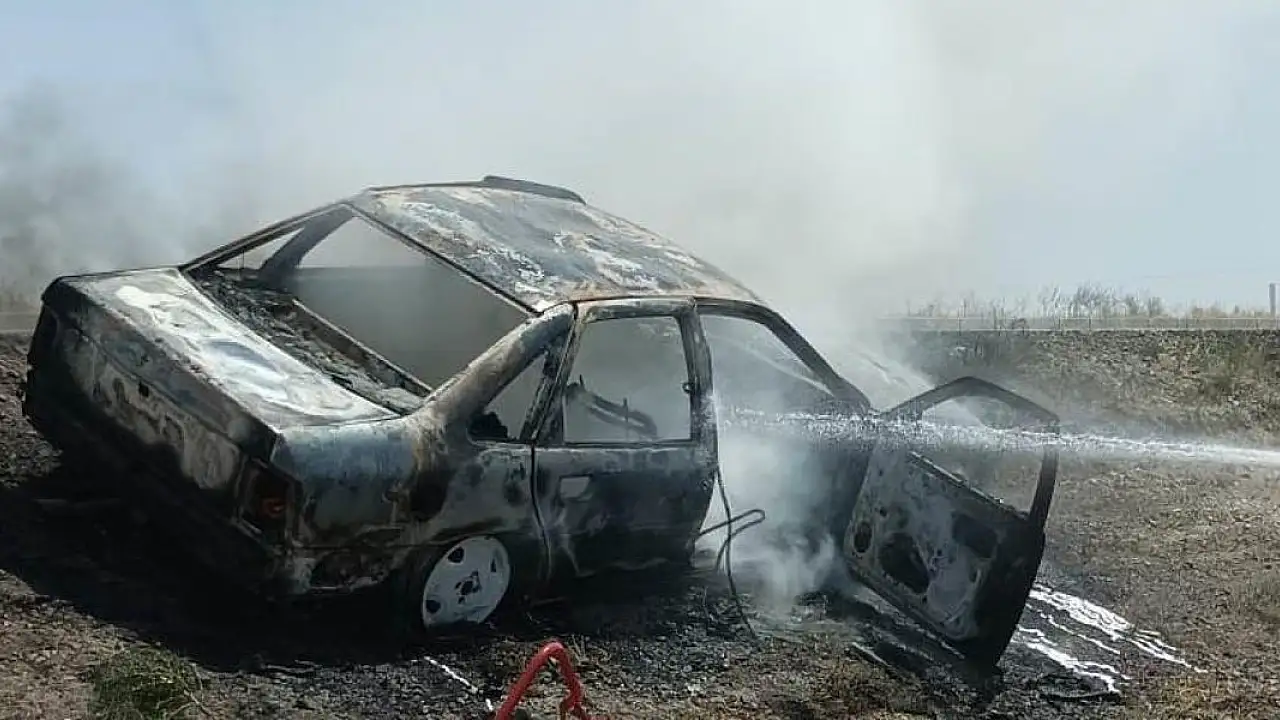 Konya'nın Karapınar ilçesinde seyir halindeki otomobil bir anda alev aldı. Araç sürücüsü ile eşi ve çocuğu son anda araçtan inerek canlarını kurtardı. Yangında otomobil tamamen kullanılamaz hale geldi.