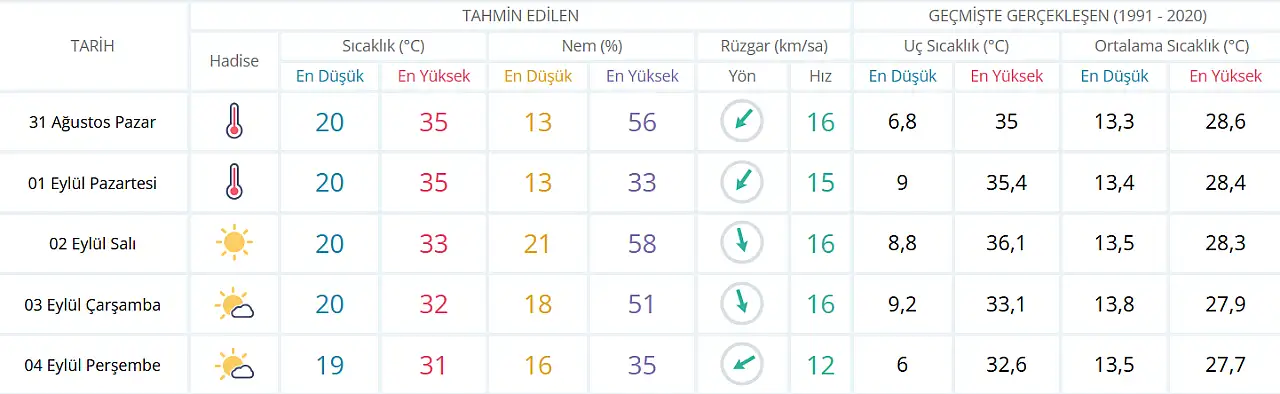 Meteoroloji Genel Müdürlüğü tarafından yapılan son değerlendirmelere göre: Konya ve ilçelerinde Pazar gününden itibaren sıcaklığın artması bekleniyor. 1 Eylül Pazartesi günü ise 35 dereceyi bulan sıcaklıklar Konya ve ilçelerinde etkisini sürdürecek.