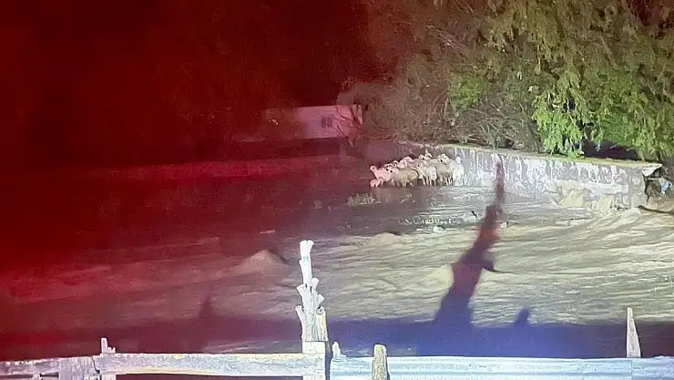 Konya'nın Kulu ilçesinde şiddetli yağmurun oluştuğu selde küçükbaş hayvanların bulunduğu duvar yıkılırken, hayvanlar ekipler tarafından kurtarıldı.