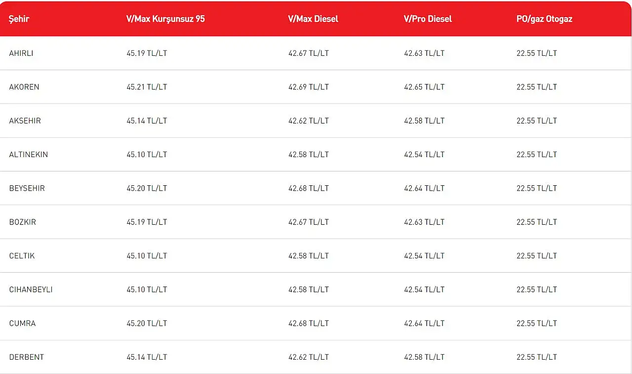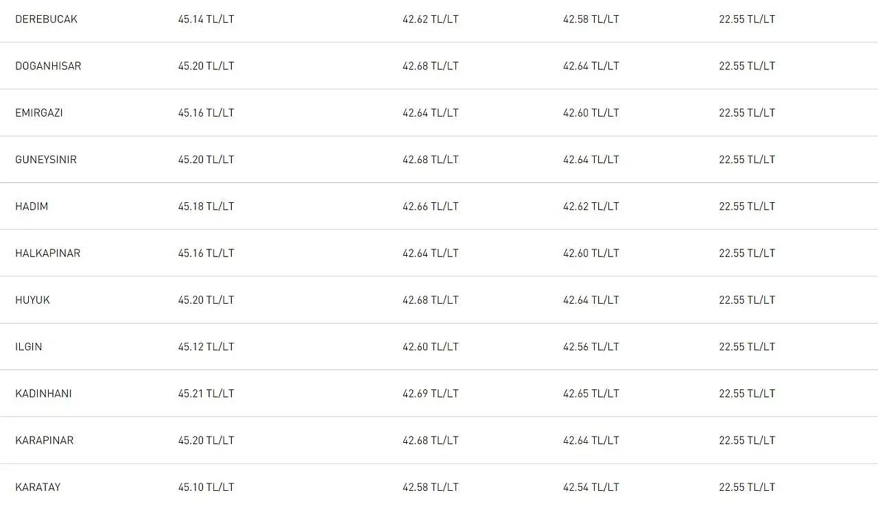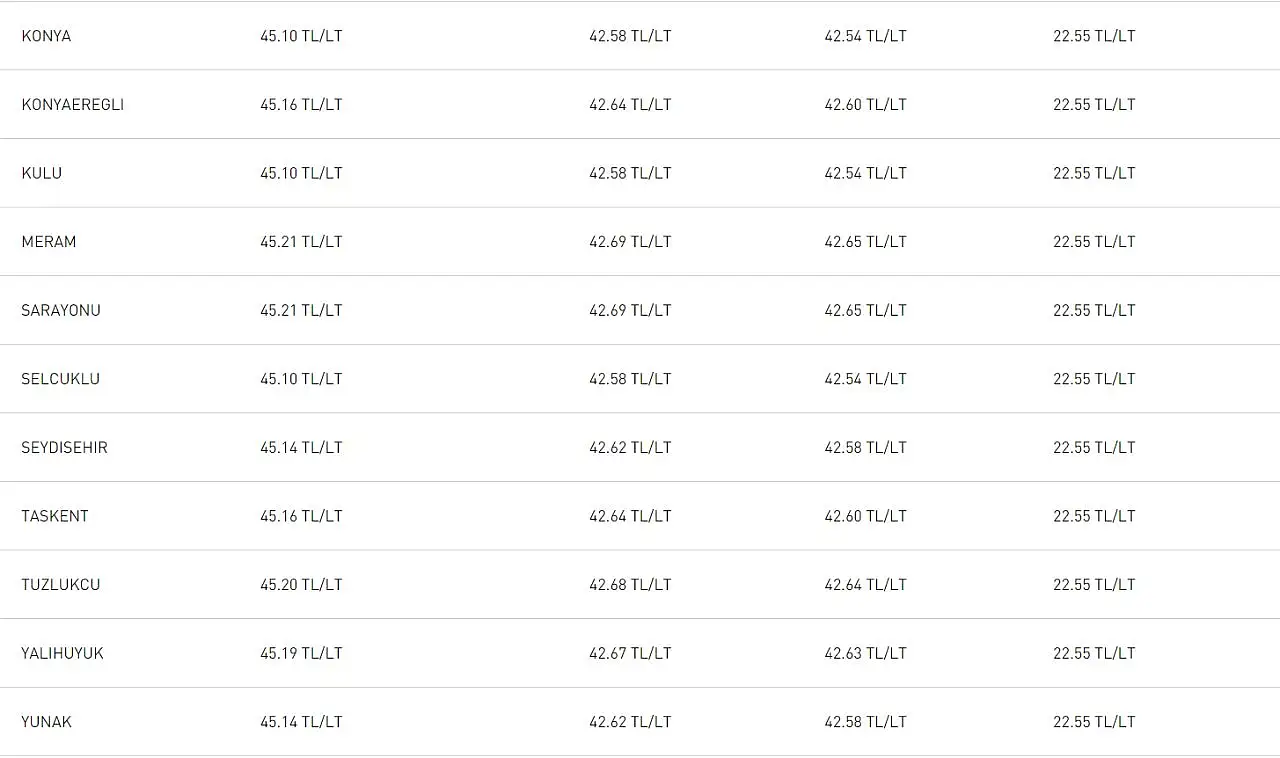 KONYA GÜNCEL AKARYAKIT FİYATLARI