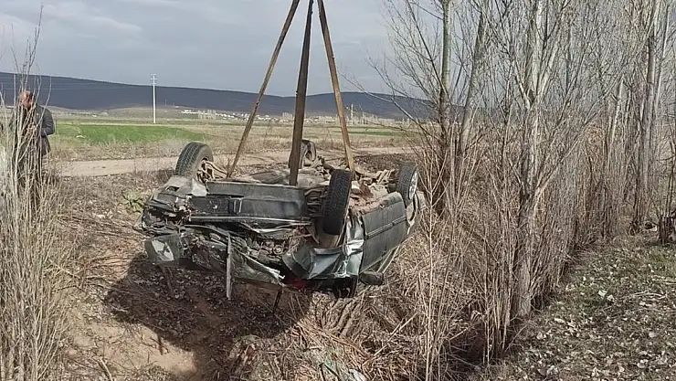 Konya'da takla atan aracın altında kalan sürücü yaralı kurtuldu