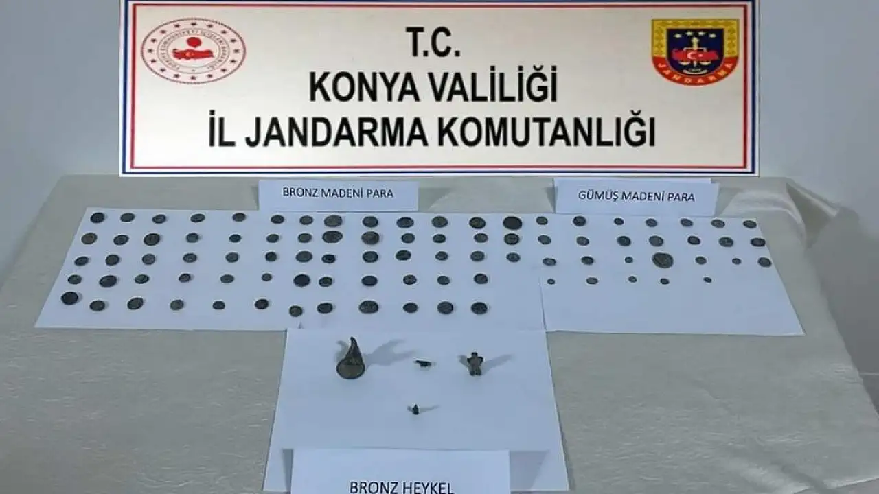 Konya İl Jandarma Komutanlığı ekiplerince yapılan istihbari çalışmalar sonucunda Ulupınar Mahallesinde yaşayan M.Ü'nün (31) tarihi eser niteliğindeki eşya ve objeleri Çukurkent Mahallesinde satmaya çalıştığı bilgisi alınması üzerine çalışma başlattı.