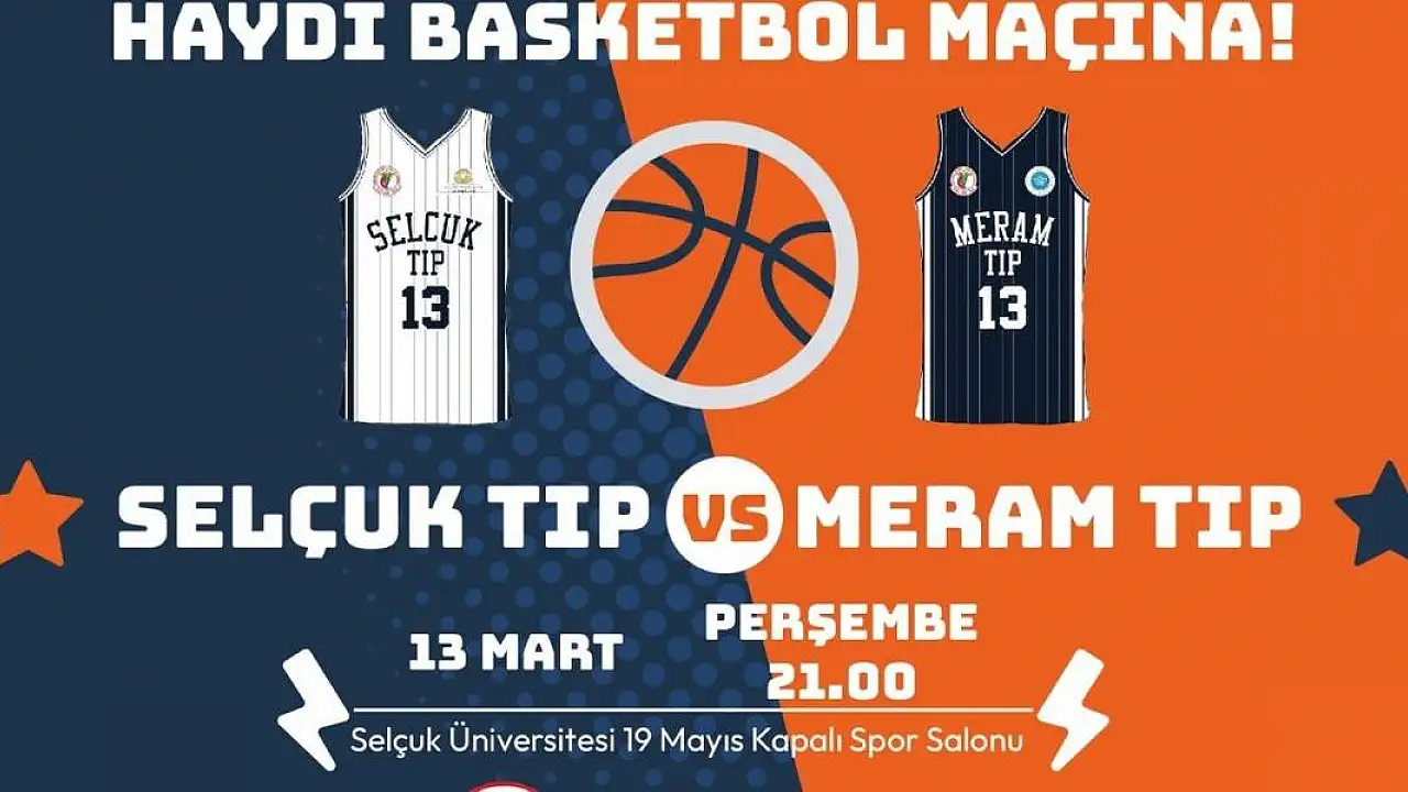 Selçuk Tıp – Meram Tıp basketbol maçı 13 Mart Perşembe 21.00’de Selçuk Üniversitesi 19 Mayıs Kapalı Spor Salonu’nda oynanacak.