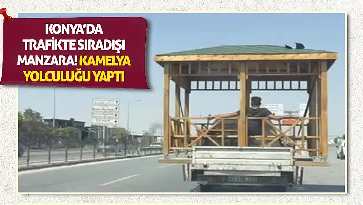 Konya'da trafikte seyreden bir kamyonetin kasasında taşınan kamelyada oturan vatandaş, ilginç görüntüler oluşturdu.Ankara Caddesi'nde seyir halinde olan bir kamyonetin kasasında trafik kuralları hiçe sayılarak taşınan kamelya, bir vatandaşın cep telefonu