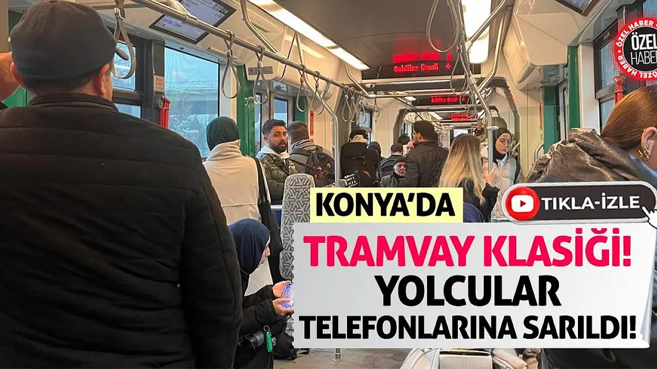 Konya'da Tramvay Klasiği! Yolcular Telefonlarına Sarıldı!