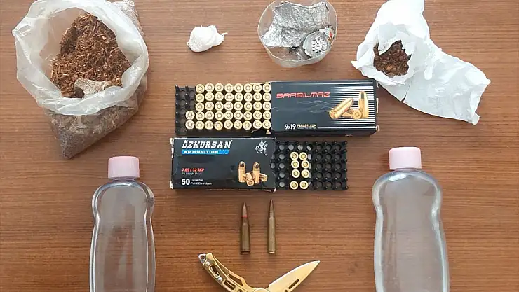 Zanlının evinde yapılan aramada, bir miktar tütüne emdirilmiş uyuşturucu madde ve farklı silahlara ait fişekler ele geçirildi.