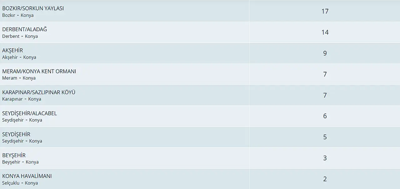 Konya'da geçtiğimiz yıllarda görülen kar kalınlarından eser kalmadı. 2022 yılında kar kalınlığının 126 cm olduğu Bozkır/ Sorkun Yaylası'nda 2024 yılında 31 cm iken 2025 yılında kar kalınlığı 17 cm olarak ölçüldü. Buna rağmen Şubat ayının ilk günlerinde yağan kar sonucunda en çok yağış alan ilçe Bozkır oldu. Bu ilçeyi Akören ve Akşehir takip etti.