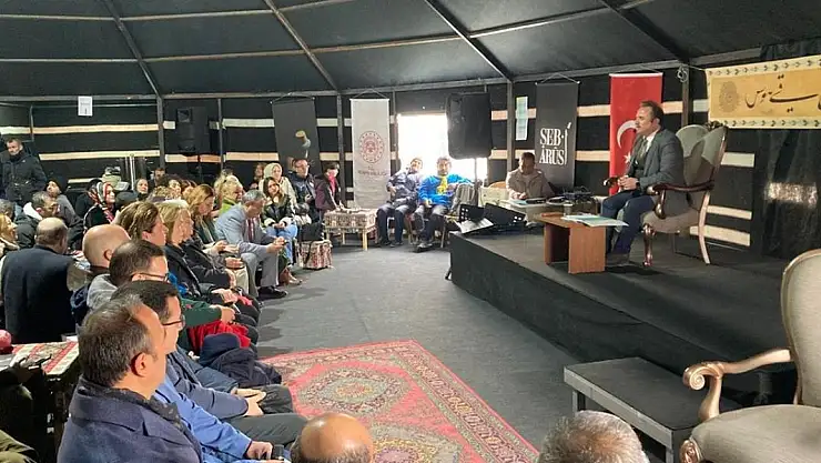 Mevlana Meydanı'nda kurulan çadırda düzenlenen Türbe Önü Buluşmaları'nda, Selçuk Üniversitesi Mevlana Araştırmaları Enstitüsü Müdürü Prof.Dr.