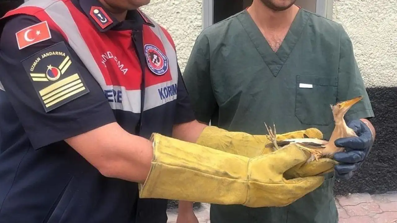İl Jandarma Komutanlığı ekipleri, ilçede ayağı kırık bir balaban kuşunun bulunduğu ihbarını aldı.