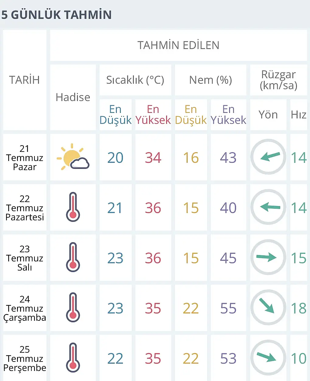 MGM, tarafından yapılan son tahmine göre Konya merkezde en düşük ve en yüksek sıcaklık dereceleri ise şöyle olacak: