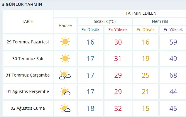 MGM, tarafından yapılan son tahmine göre Konya merkezde en düşük ve en yüksek sıcaklık dereceleri ise şöyle olacak: