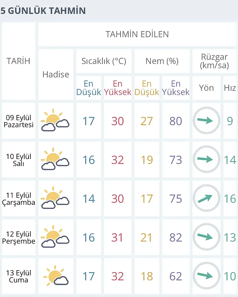 Meteoroloji Genel Müdürlüğü'nün verilerine göre yarın hava sıcaklığı en düşük 17, en yüksek 30 derece olacak.