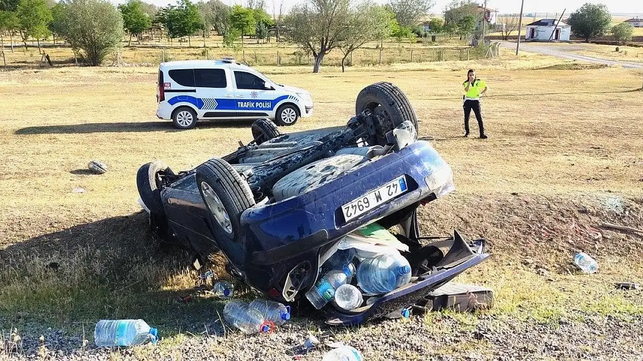 - Konya'da yaşlı sürücü virajı alamayınca takla attı