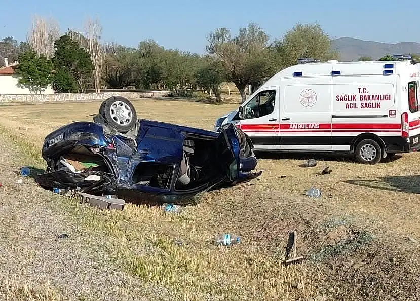 Konya'da yaşlı sürücü virajı alamayınca takla attı