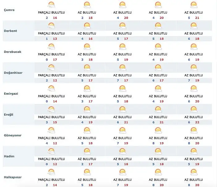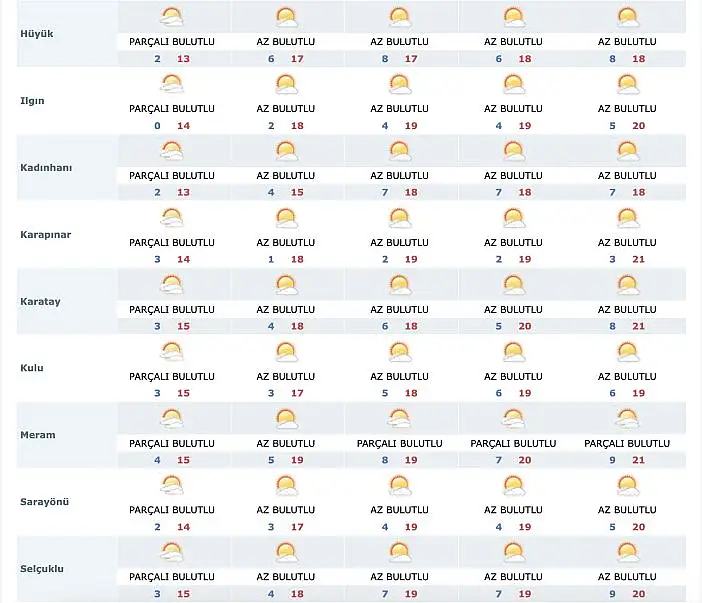 İŞTE KONYA VE İLÇELER İÇİN HAVA DURUMU