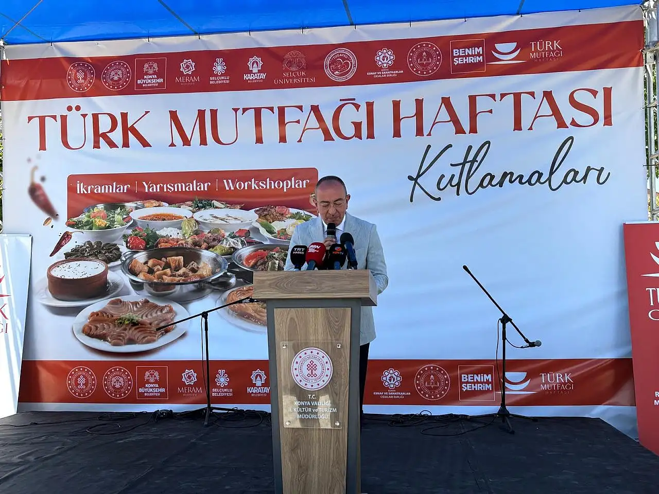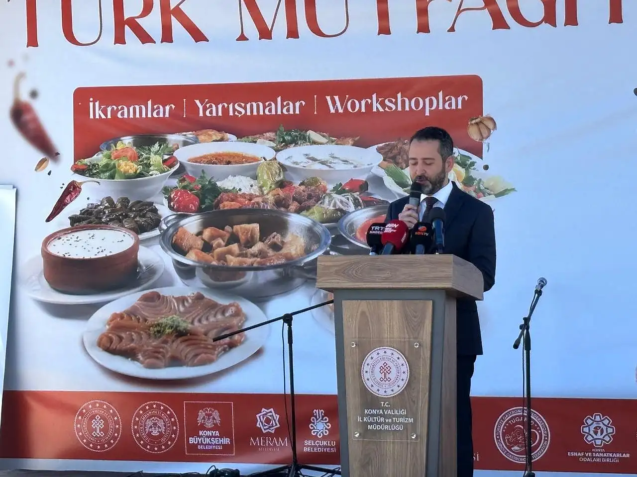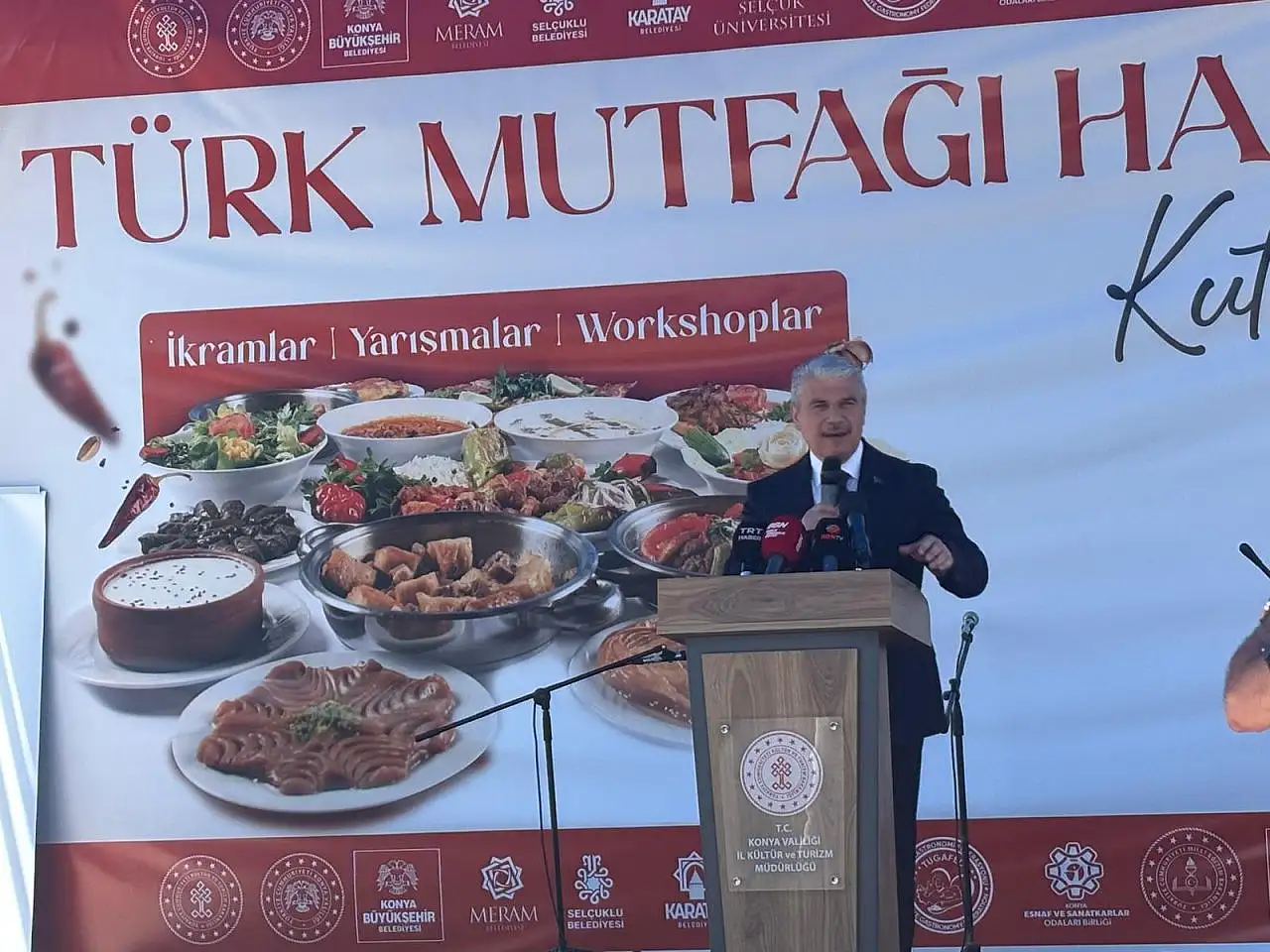 Türk kültürünü gelecek nesillere taşınmanın en güzel ve anlamlı yolunun mutfak kültürü olduğunu açıklayan Konya Valisi İbrahim Akın, “Bu yılda büyük bir özenle hazırlanan etkinlikler mutfağımızın tarihsel ve kültürel zenginliği farklı boyutlarıyla gözler önüne seriyor. Kadim medeniyetimizin sofrası olan Türk mutfağı kültürümüzü geleceğe taşıyan bir medeniyet aracı, coğrafyamızı ve ecdadımızın damakta iz bırakan en zarif anlatımıdır. Bugün burada yemeklerin ötesinde, toprağın bereketini, emeğin kıymetini ve kültürel hafızamızı da konuşuyoruz. Çatalhöyük’ten bugüne uzanan sürdürülebilirliği ve sağlıklı beslenmeyi merkeze alan yapısıyla Selçuklu’dan Osmanlı’ya Anadolu’nun bereketli topraklarından süzülen bu büyük miras bugün dünya mutfağında da saygın bir yere sahip oldu. Mevlana’nın manevi sofrasından, Ateşbaz Veli’nin mutfak ahlakına, Selçuklu mutfağından coğrafi işaretli ürünlerimize uzanan etkinliklerle bu zengin mirasımızı hep birlikte yeniden yaşıyoruz.