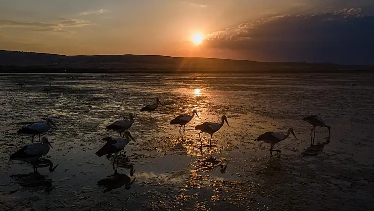 Avrupa’dan Afrika’ya uzanan uzun ve zorlu göç yolculuklarında gölde mola veren leylekler, burada sığ sularda beslenip dinlenerek yollarına devam ediyor.