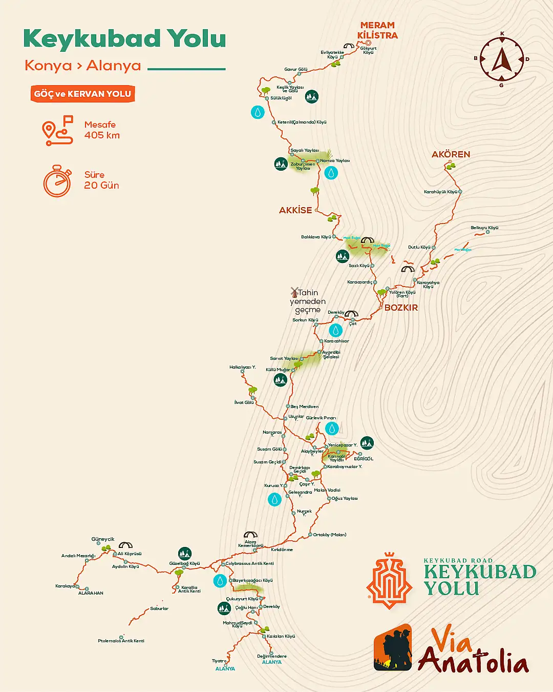 Konya Valiliği, Antalya Valiliği ile Konya Büyükşehir Belediyesi iş birliğiyle hayata geçirilen Keykubad Göç ve Kervan Yolu, Anadolu'nun binlerce yıllık tarihini, kültürünü ve doğal güzelliklerini doğaseverlerle buluşturuyor.Selçuklu Su