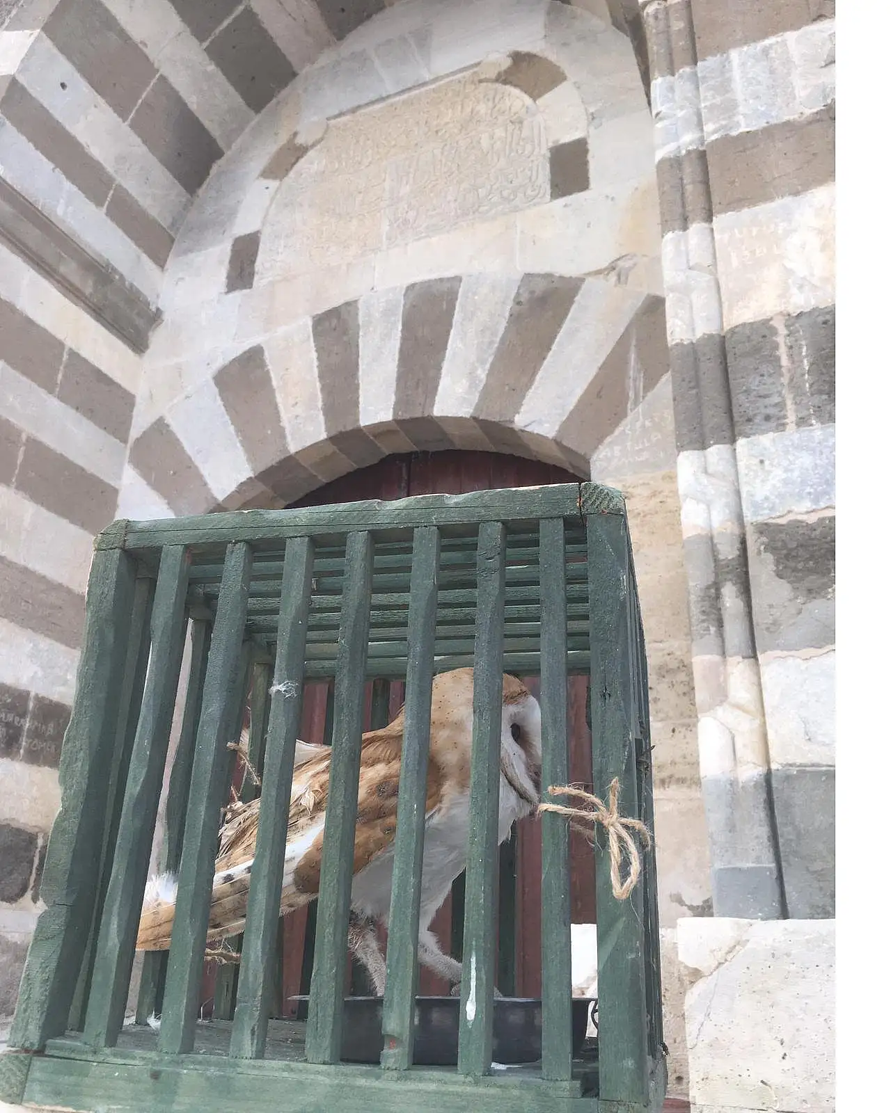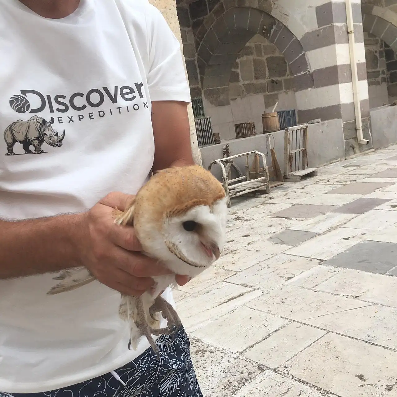 Nesli tükenmekte olan peçeli baykuş yaralı halde Selçuklu Kültür Mirası Zazadın Hanı Kervansarayı’nda hana Bursa’dan gelen bir ziyaretçi tarafından görüldü. Uzun süre yerinden kıpırdamayan Baykuş yakalandı. Ayağına ip dolanmış ve dolandığı yeri boğmuş olduğu görüldü.